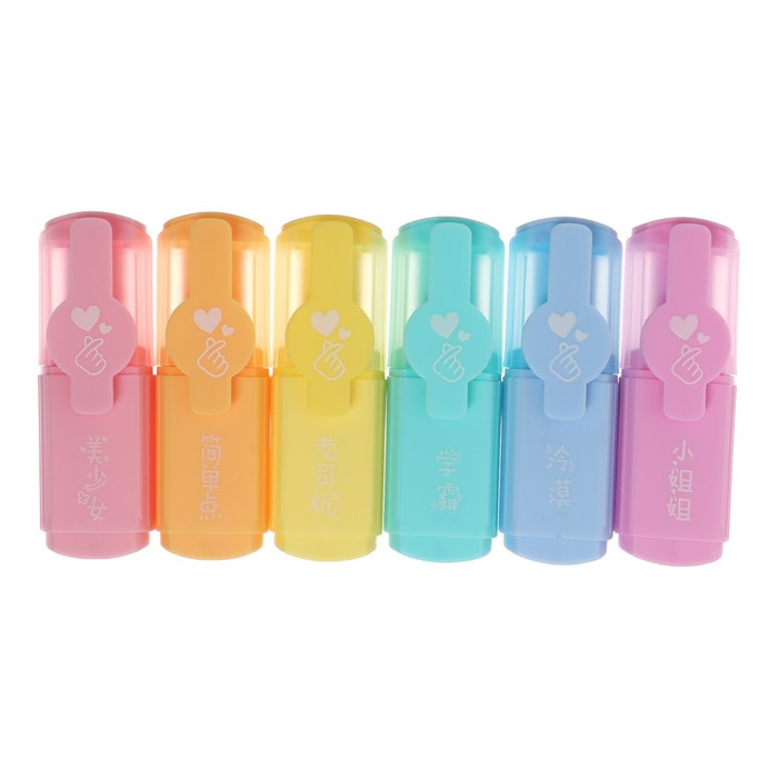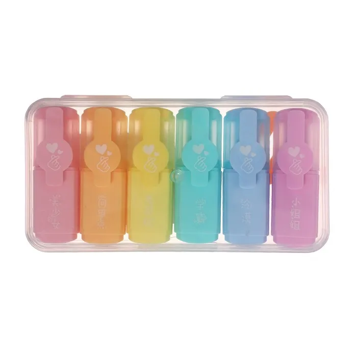 Набор маркеров текстовыделителей 6 цветов, в пластиковом пенале