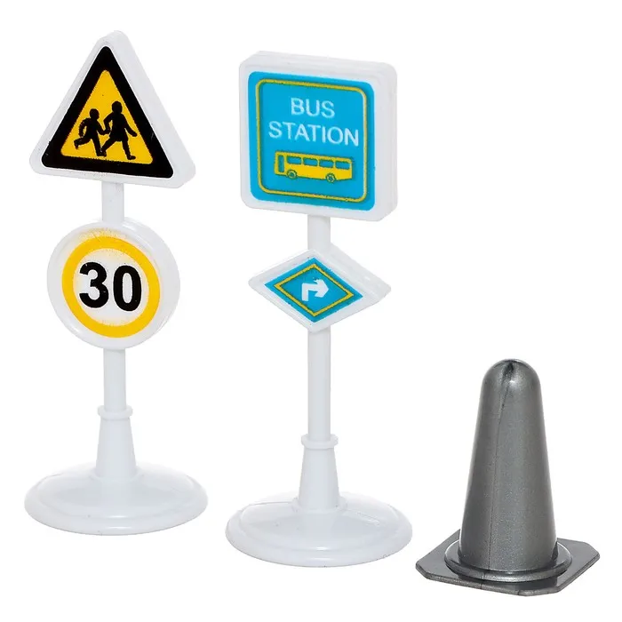 - Дорожные знаки и светофор: дополняют игровой набор, делая игру реалистичнее. Малыш учится простым правилам дорожного движения в игровой форме.