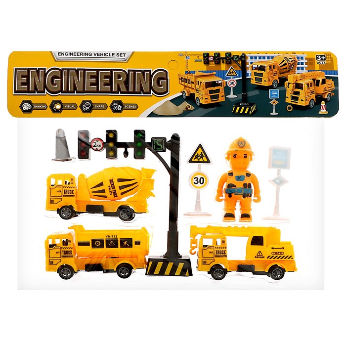 Набор машинок «Спецтехника», 3 шт, дорожные знаки, МИКС — Характеристики