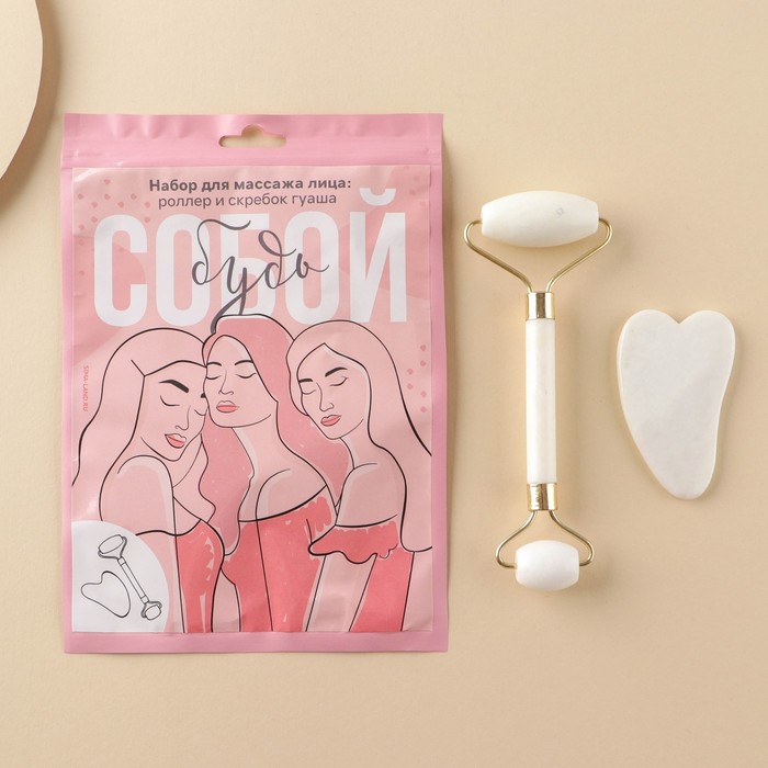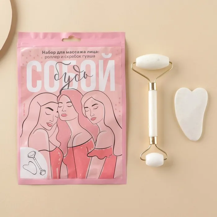 В набор входит роликовый массажёр и массажёр гуаша. Оба предмета помогают снять отёчность лица, уменьшить количество морщин, подтягивают кожу, тонизируют её. Массажёр гуаша полезен ещё и тем, что благодаря своей форме помогает избавиться от тёмных кругов под глазами.