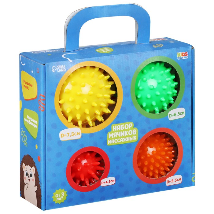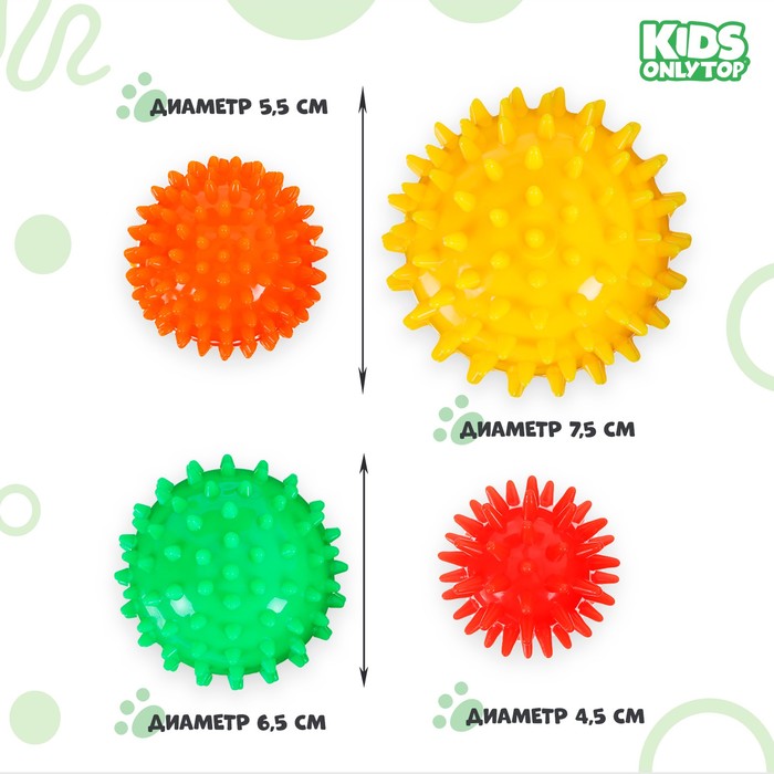 Набор массажных мячей ONLYTOP «Ёжик», 4 шт., МИКС — Характеристики