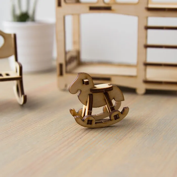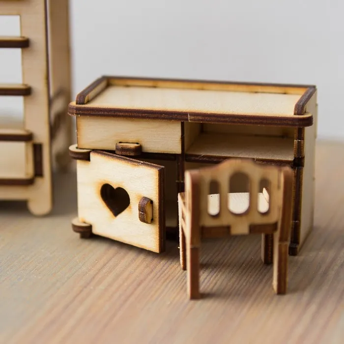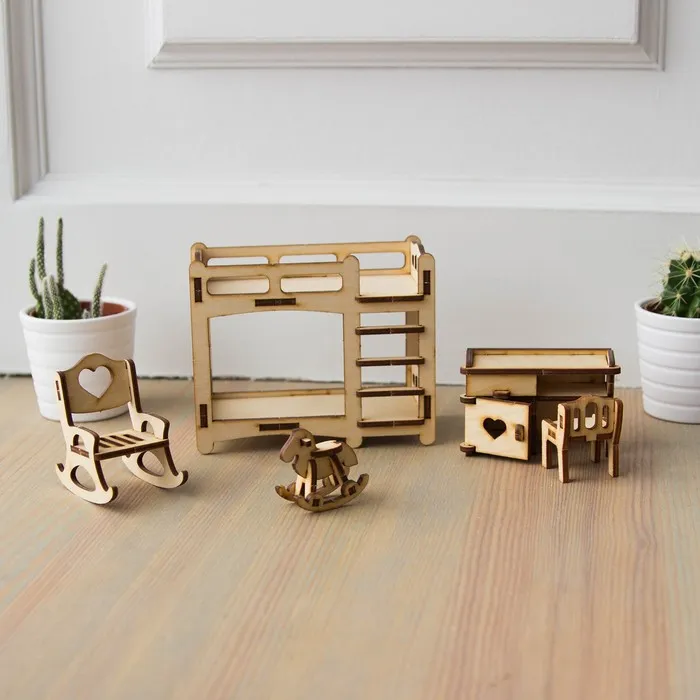Создайте миниатюру настоящей комнаты из деревянных деталей. Предметы мебели сделаны из экологически натурального и безопасного материала. Изделия выглядят очень реалистично и идеально подойдут как для игр малыша, так и в качестве декора для детской.