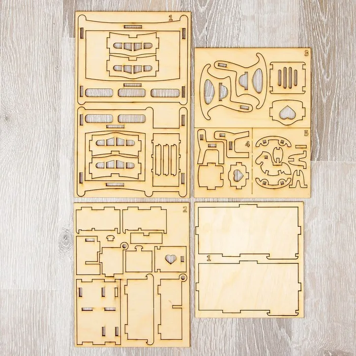 Собрать мебель очень просто — аккуратно выдавите из основы элементы и соедините между собой с помощью специальных пазов. Набор также можно использовать как основу для творчества: раскрасьте детали вместе с ребёнком карандашами, маркерами или акриловыми красками.