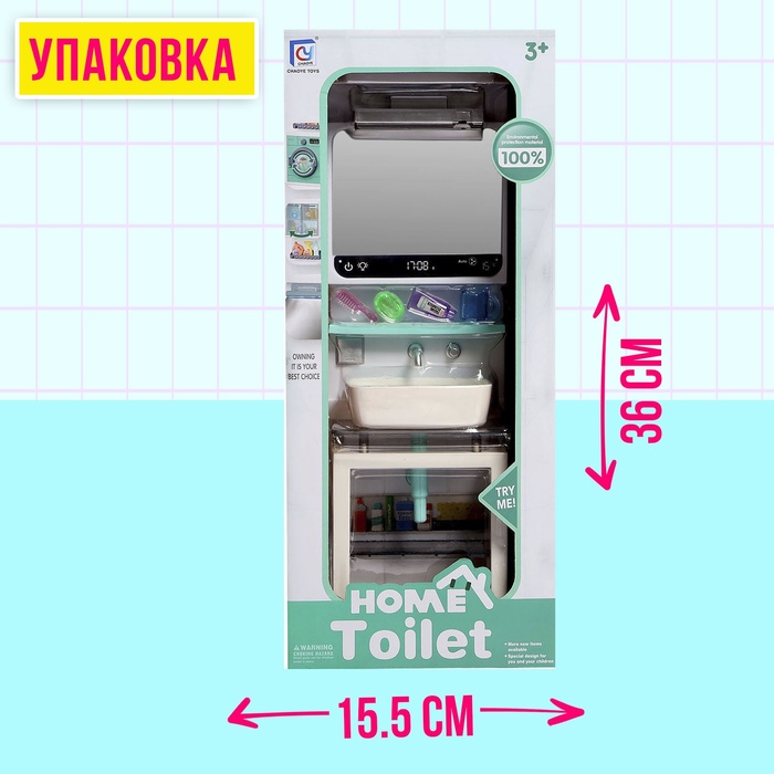 Набор мебели для кукол «Уборная», раковина, зеркало, аксессуары — Характеристики