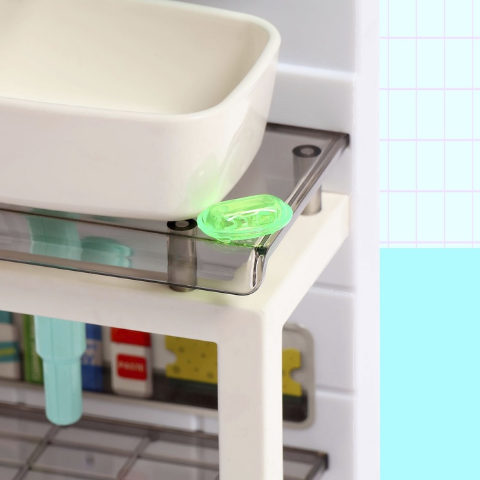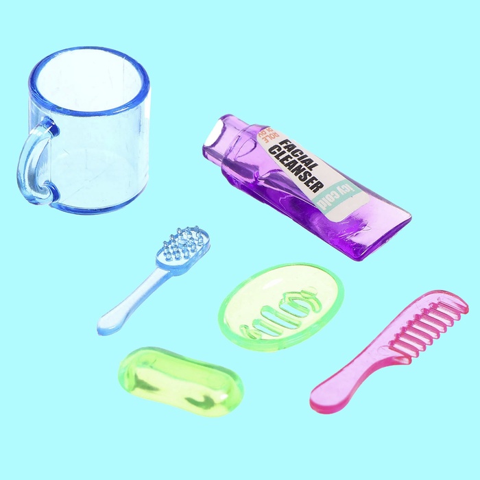 • В комплекте разнообразные аксессуары для ванной комнаты: мыльница, зубная щетка, тюбики с пастой и гелем для душа. Все элементы выполнены из высококачественного пластика, что гарантирует долгий срок службы игрушки.