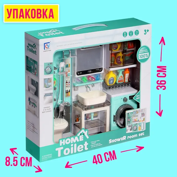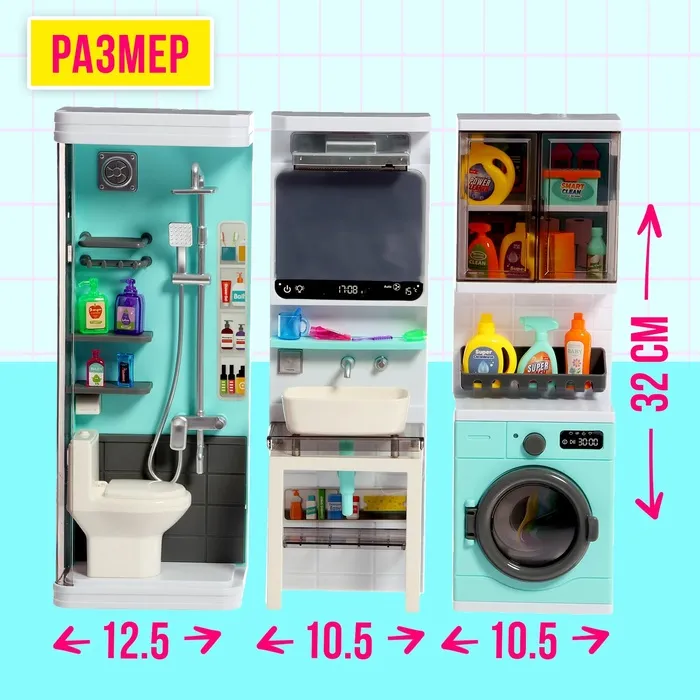 Набор мебели для кукол «Ванная комната»: санузел, раковина, постирочная — Характеристики