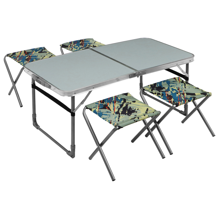 Набор мебели: стол, 4 стула, цвет металлик/камуфляж саванна — Характеристики