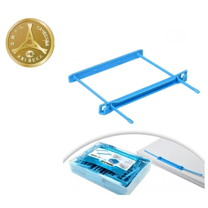 Cкоросшиватель предназначен для архивирования документации. Оснащён фиксатором, позволяющим надёжно закрепить документы. Позволяет переносить и хранить документацию без папок.