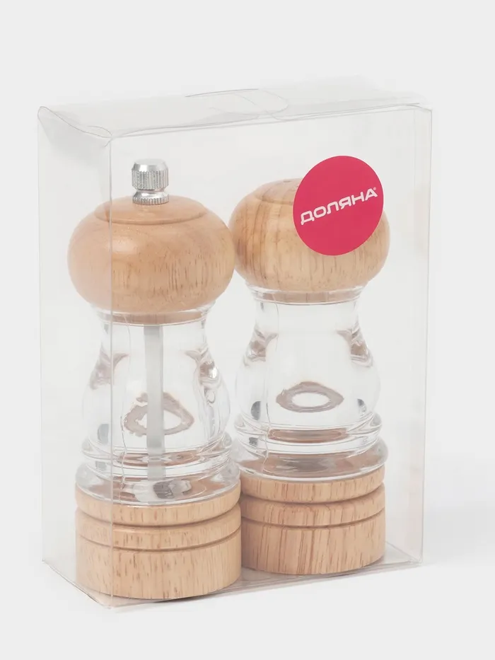 Набор мельниц для соли и перца Доляна, 2 предмета: 10.5×5 см, 11.5×5 см, прозрачный — Характеристики