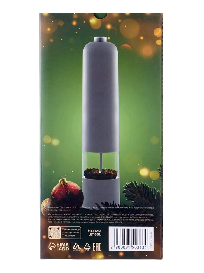 Набор мельниц для специй Luazon LET-001 "Новогодний", электрические, от батареек — Характеристики