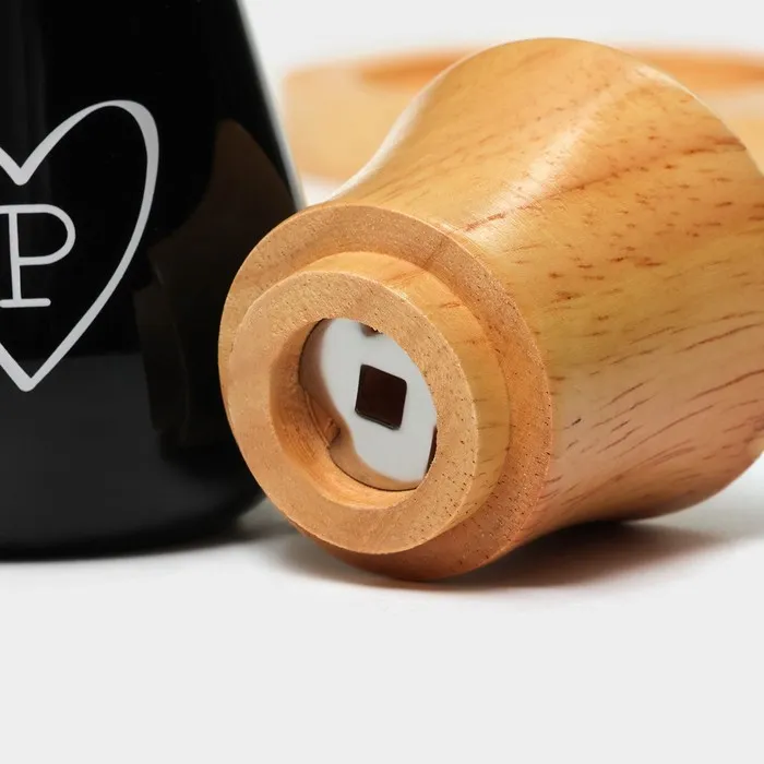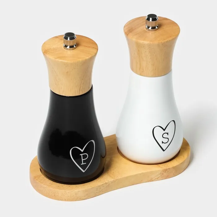 Набор состоит из двух мельниц черного и белого цвета, выполненных в стиле “Любовь”. Мельницы изготовлены из натурального бамбука и оснащены керамическими жёрновами, которые измельчают специи до желаемой консистенции.