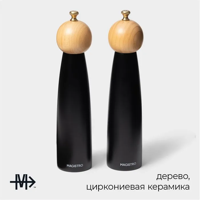 Набор мельниц для специй Magistro Ollander, 2 шт., 27 см, чёрный — Характеристики