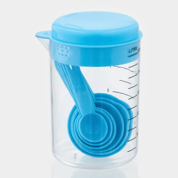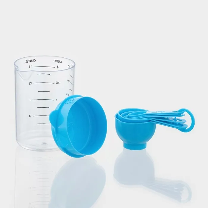 Набор мерных ёмкостей «Маэстро», 7 предметов: стакан 500 мл, ложки, голубой — Характеристики