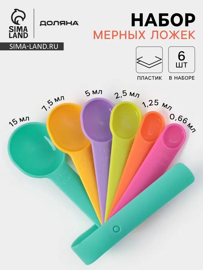 Набор мерных ложек Доляна « Колор», 6 шт., пластик, разноцветный — Характеристики