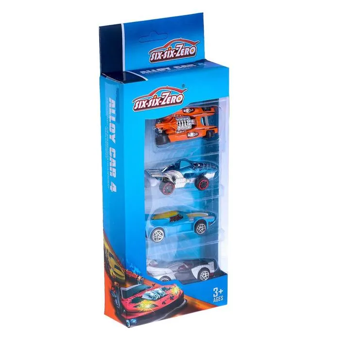- Четыре машинки в наборе: в комплект входят яркие гоночные модели, выполненные из металла. Каждая машинка имеет размер 7,5 х 3 х 2,5 см, что делает их удобными для игры как дома, так и на улице. Простой дизайн без лишних деталей подчеркивает динамику и скорость.
