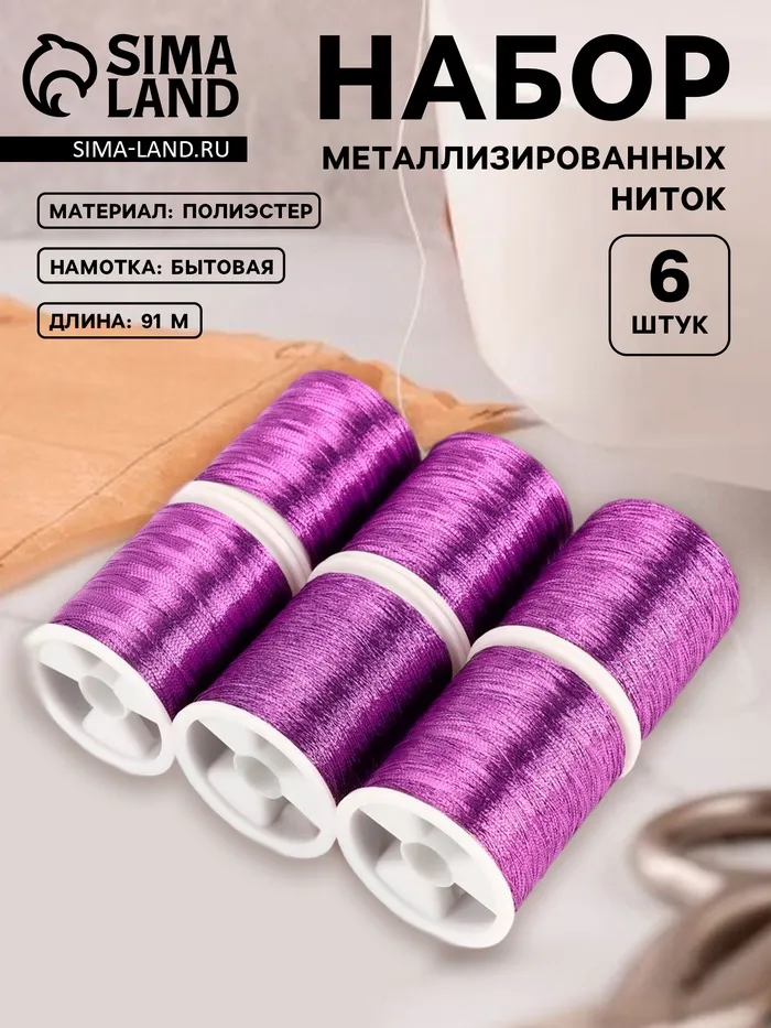 Набор металлизированных ниток, 91±1 м, 6 шт., фиолетовый