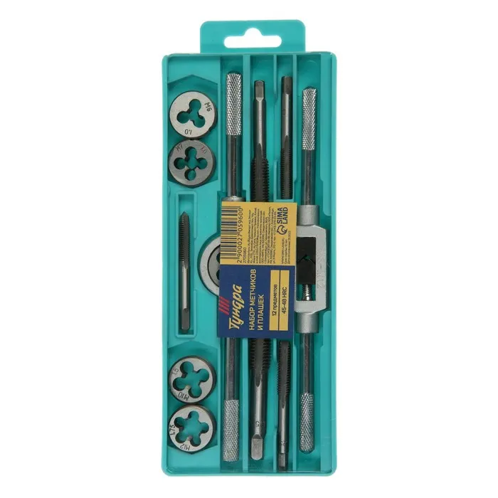 Набор метчиков и плашек ТУНДРА, М6 - М12, 12 предметов — Характеристики