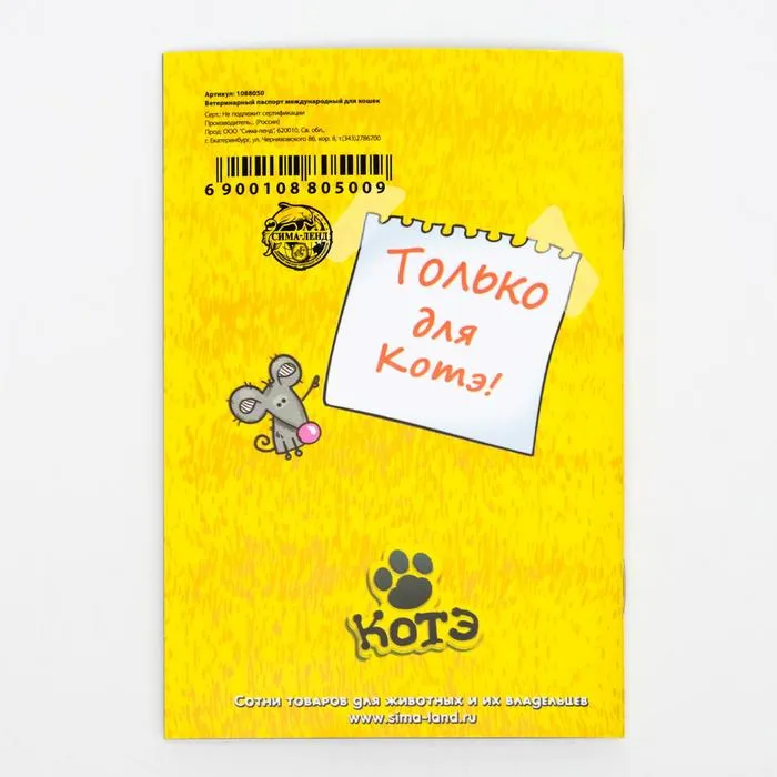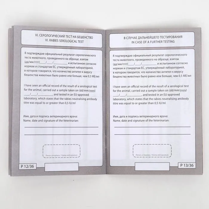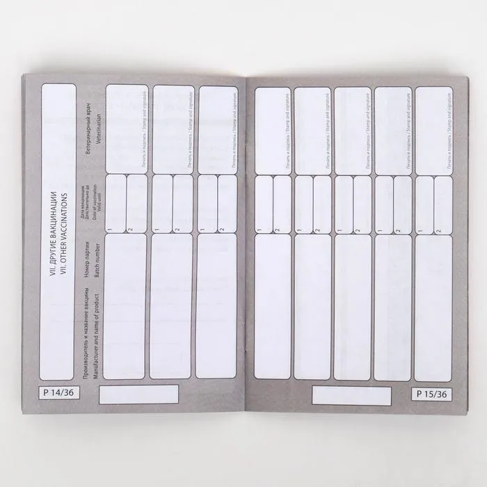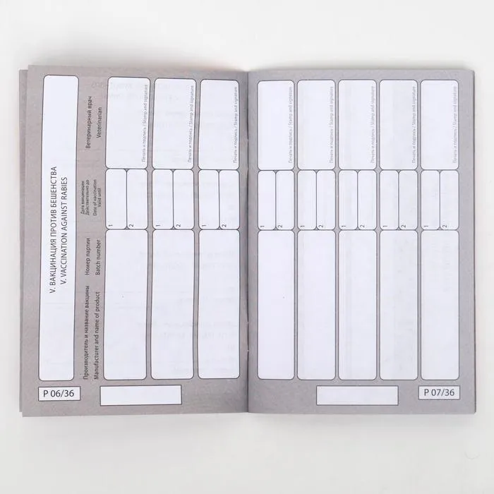 В этот документ включены данные о проведенных вакцинациях, чипировании, наличии прививок и информации о заболеваниях. Крепкая обложка из прочной бумаги обеспечивает продолжительный срок службы паспорта.