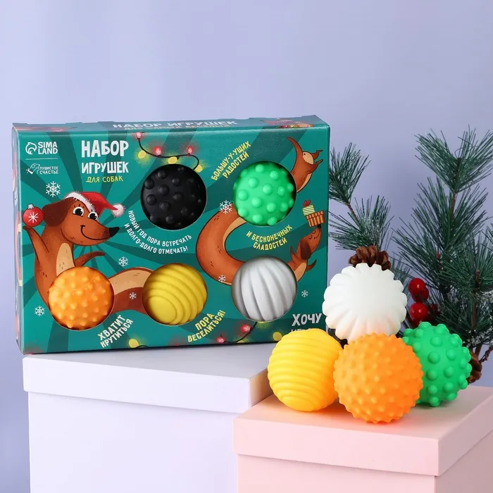 Набор мячей для собак «Для самых весёлых пёселей», 5 мячей — Характеристики