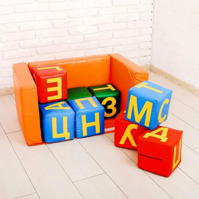 «Буквы-Диван» — набор мягких кубиков, которые подходят для дома и дошкольных учреждений. Игровая мебель послужит хорошим украшением для детской комнаты, а яркий дизайн привлечёт внимание ребёнка..