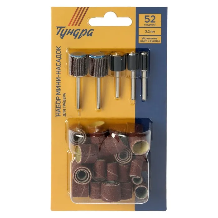 Набор мини-насадок для гравера ТУНДРА, абразивные круги и рулоны, 3.2 мм, 52 предмета — Характеристики
