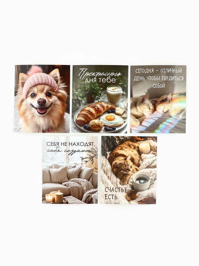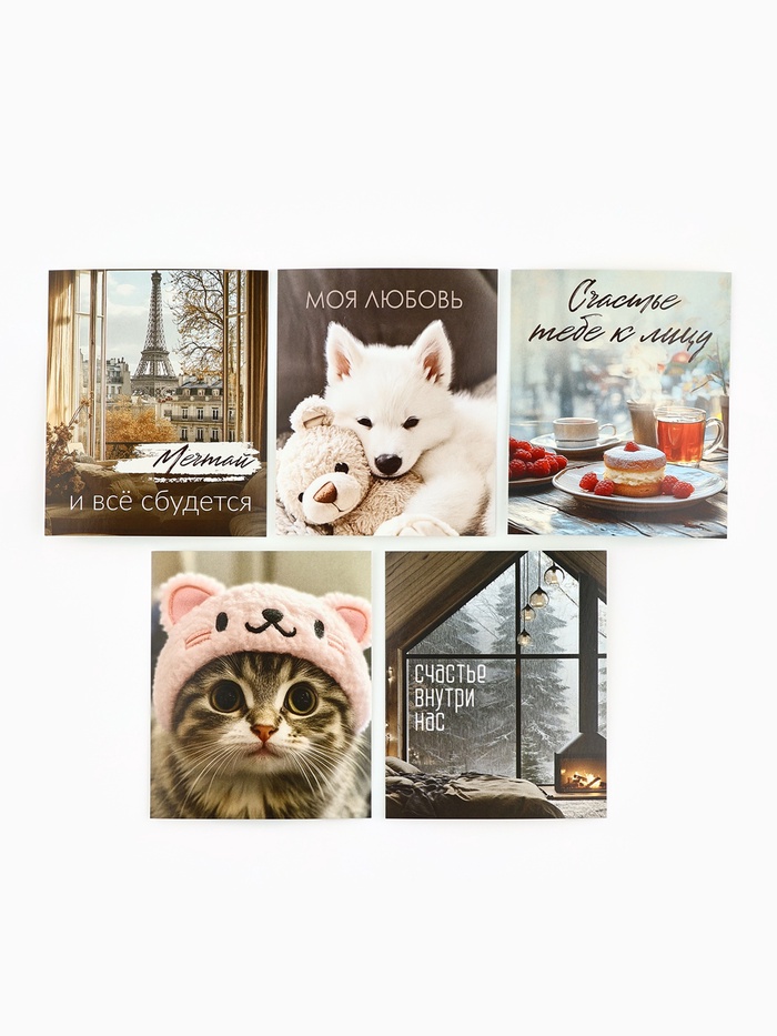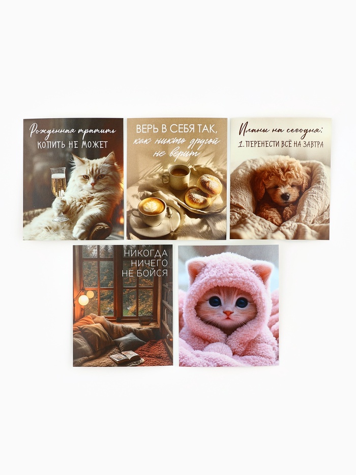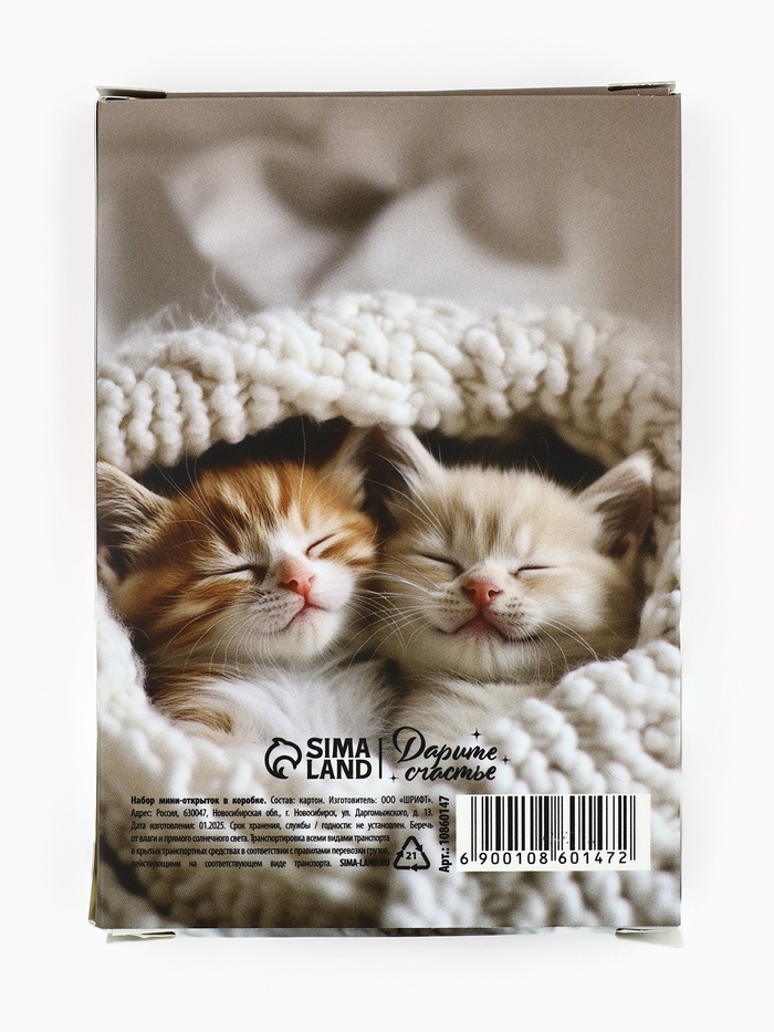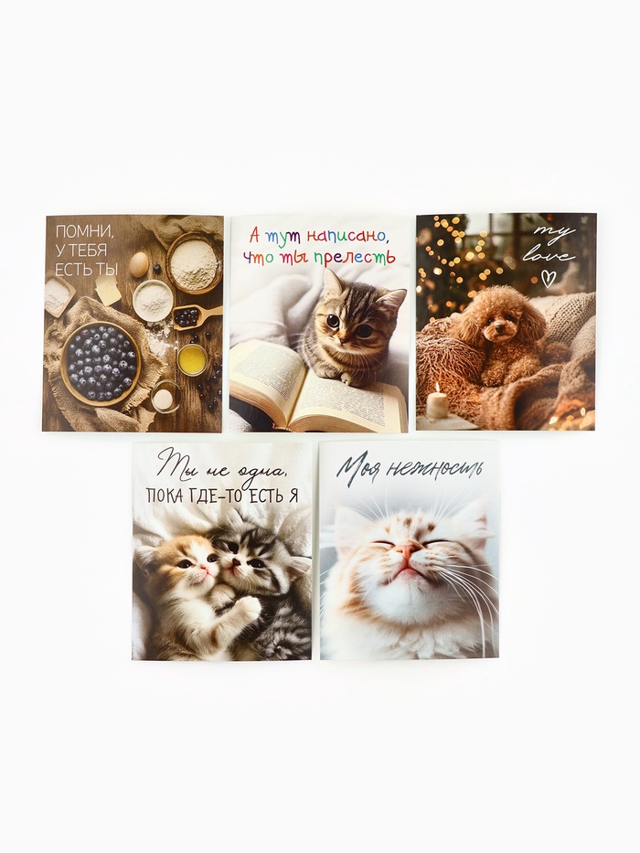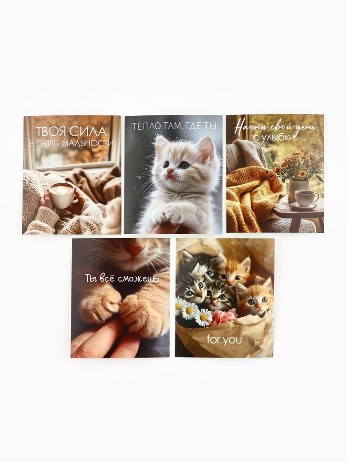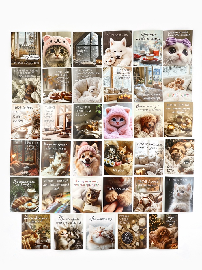 Набор мини-открыток в коробке со скрепками «Котики», 35 штук, 8 x 10 см — Характеристики