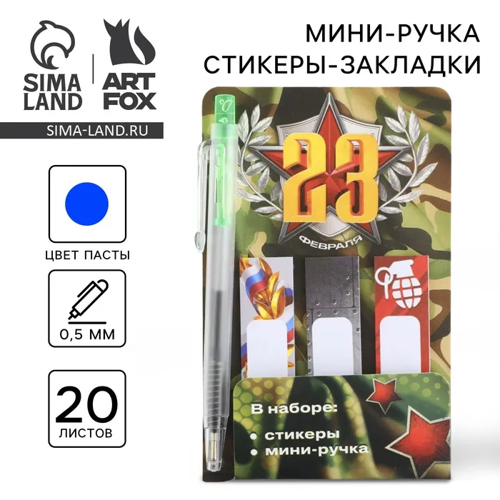 Набор мини ручка и стикеры-закладки 20 л «23 февраля» — Характеристики