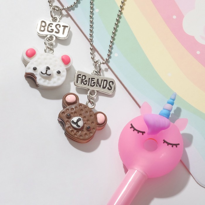 Набор «Мишки», 3 предмета: парные кулоны на цепочкеа, ручка, цветной, 44 см — Характеристики