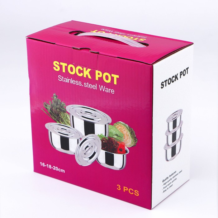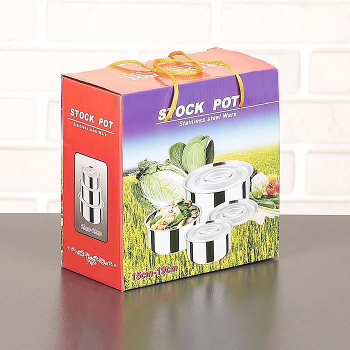 Набор мисок из нержавеющей стали с крышками 3 шт.: 0.75 л, 1 л, 1.45 л, d=15 см, d=16.5 см, 18.5 см — Характеристики