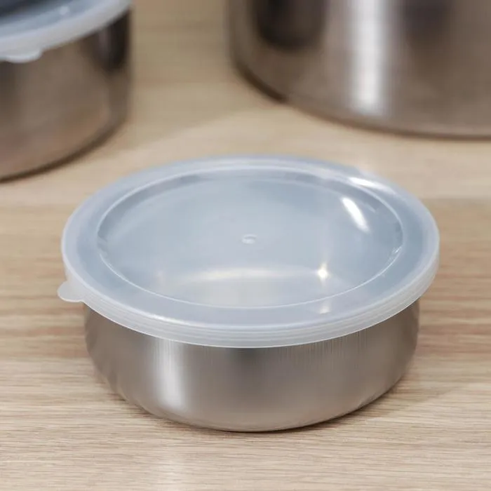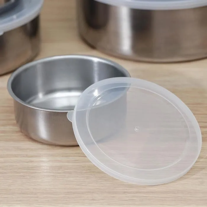 Набор мисок «Сталь», 5 шт.: d=18 см, 850 мл/d=16 см, 600 мл/d=14 см, 450 мл/d=12 см, 250 мл/d=10 см, 150 мл, с крышками, нержавеющая сталь, серебристый — Характеристики