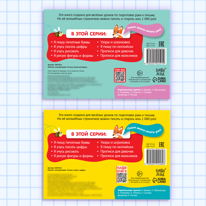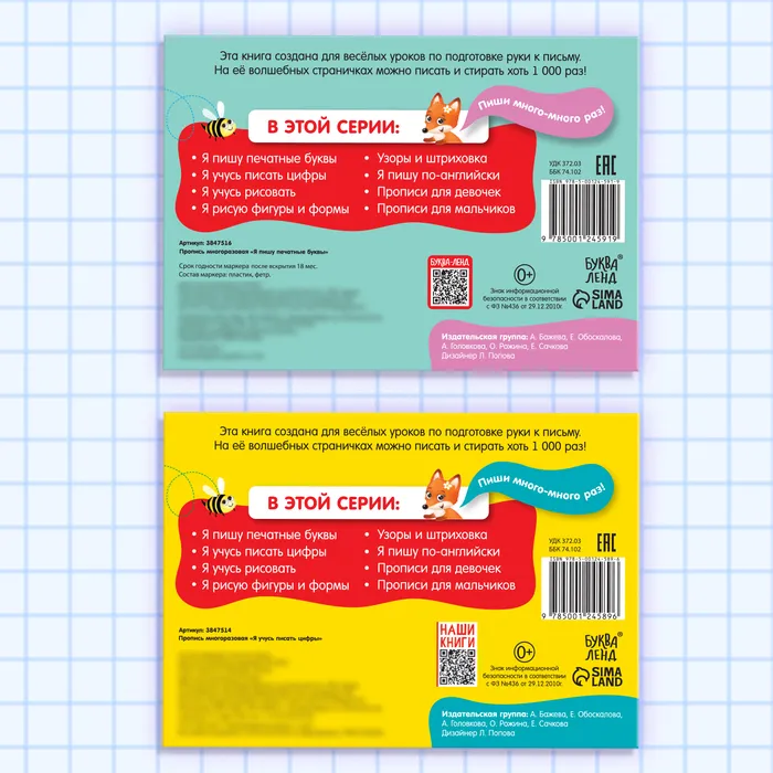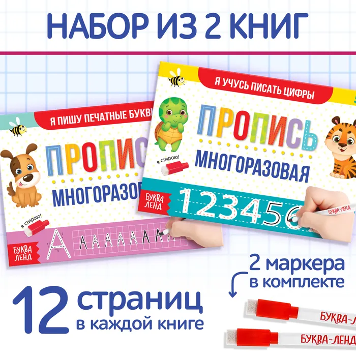 Набор многоразовых прописей «Пиши- стирай. Пишем буквы и цифры», с маркером 2 шт., 12 стр. — Характеристики