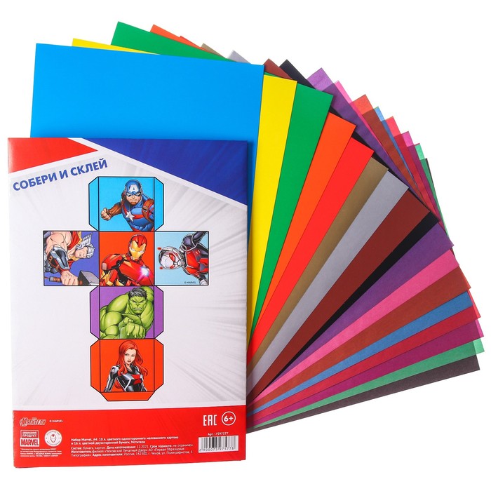 Набор "Мстители" А4: 10л цветного одностороннего картона + 16л цветной двусторонней бумаги — Характеристики