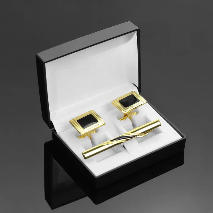 Набор мужской медный «Запонки+Зажим(6 см)для галстука» точеч рисунок, прямоуг, чёрный в зол — Характеристики