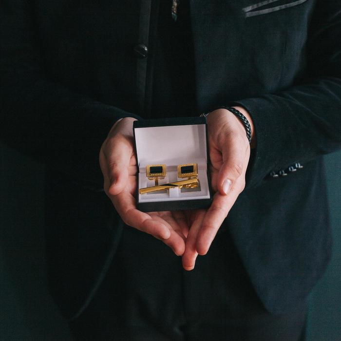 Мужские наборы запонки и зажим для галстука от торговой марки Queen Fair — стильный аксессуар, который станет изюминкой вашего образа.