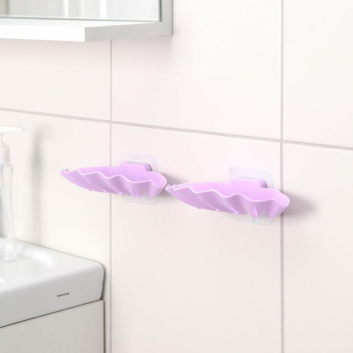 Набор мыльниц на липучке «Ракушка», 2 шт, 16×8,5×3,5 см, цвет МИКС — Характеристики