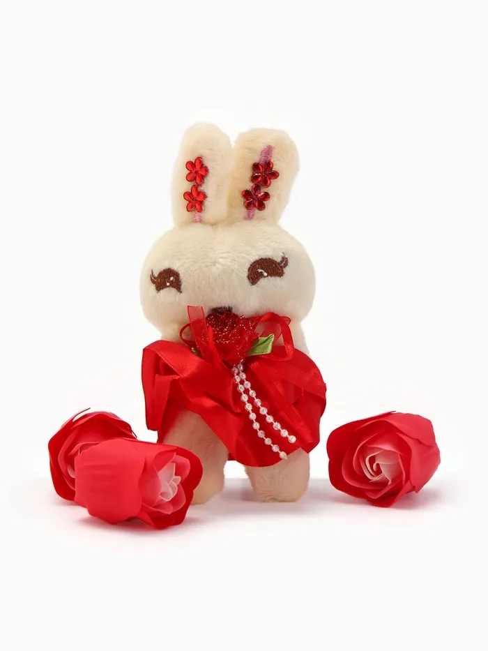 Набор мыльных роз в коробке 8 штук, красно-белые с зайчиком — Характеристики