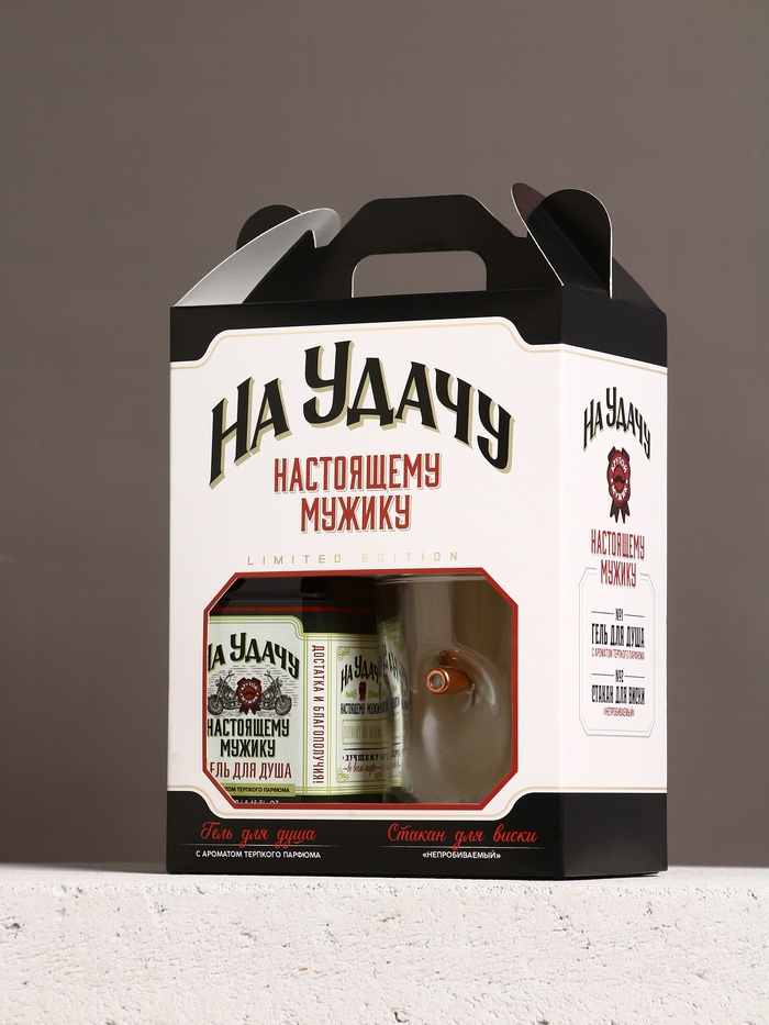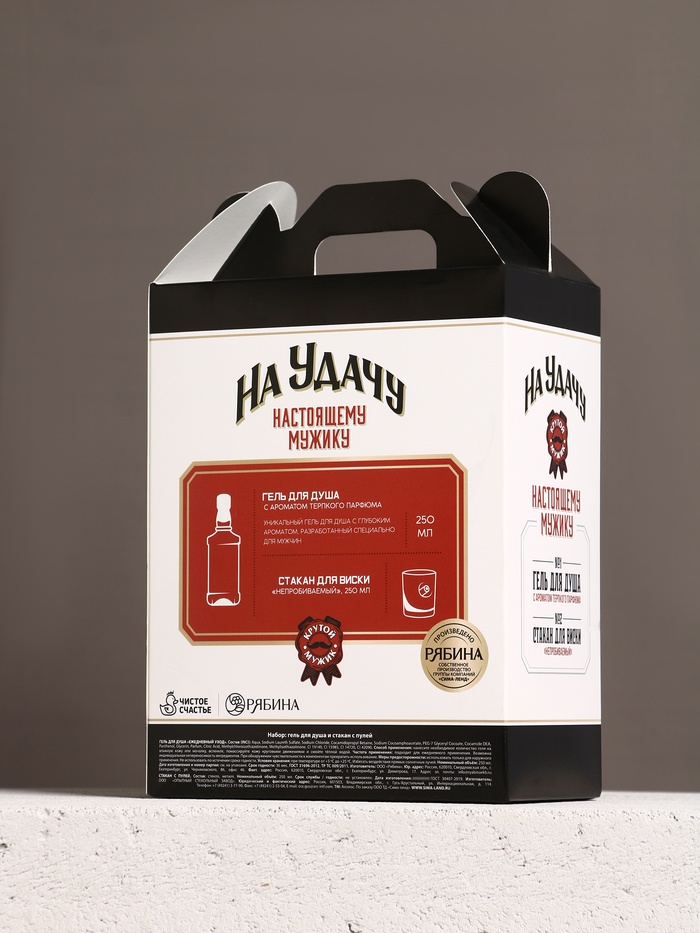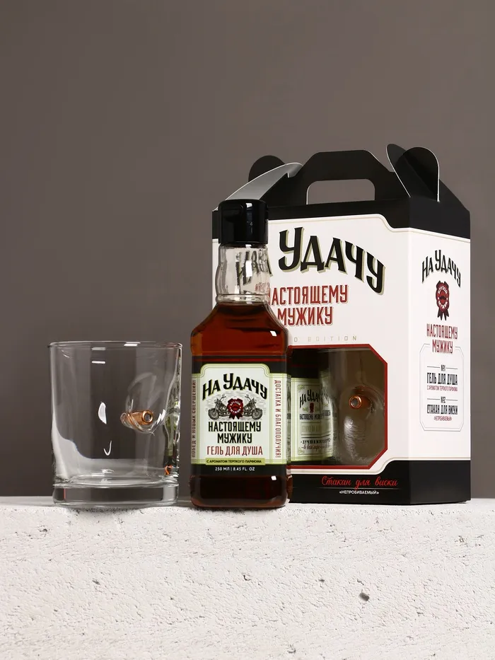 Набор «На удачу», гель для душа виски 250 мл и стакан с пулей, Чистое счастье — Характеристики
