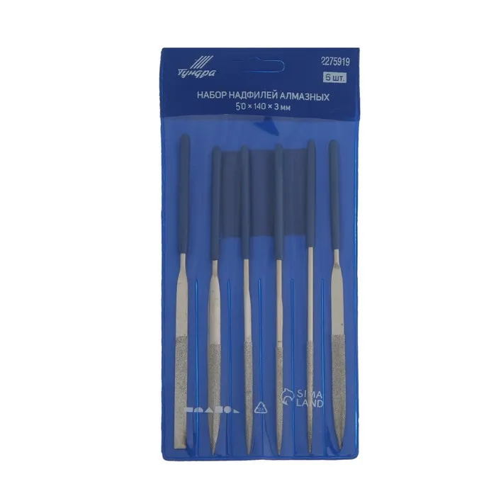 Набор надфилей алмазных ТУНДРА, обрезиненные рукоятки, 50×140×3 мм, 6 шт. — Характеристики