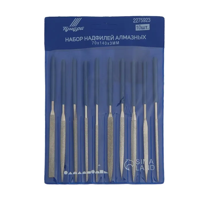 Набор надфилей алмазных ТУНДРА, обрезиненные рукоятки, 70×140×3 мм, 10 шт. — Характеристики