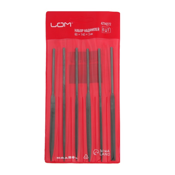 Набор надфилей ЛОМ, металлические рукоятки, 60 х 140 х 3 мм, 6 шт. — Характеристики