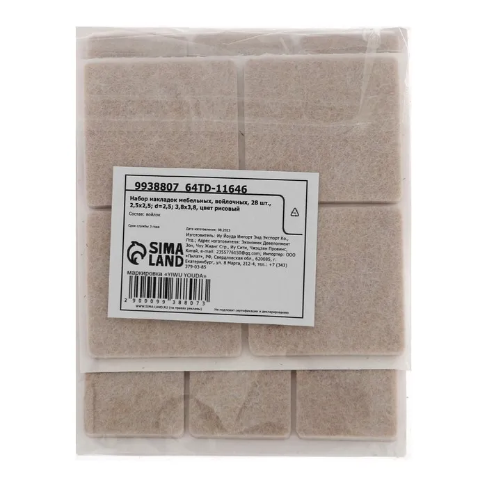 Набор накладок мебельных, войлочных, 28 шт., 2.5×2.5; d=2.5; 3.8×3.8, рисовый — Характеристики