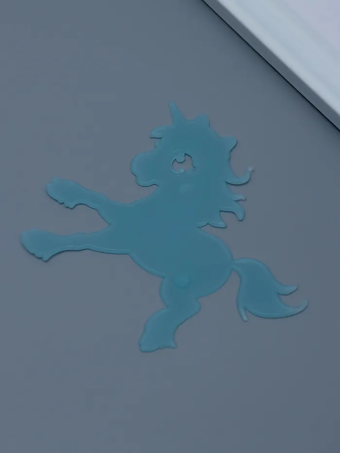 Погрузитесь в мир магии и фантазии с набором интерьерных наклеек, которые превратят любое пространство в сказочное место. Четыре голубых единорога, выполненные из высококачественного пластика, станут яркими акцентами в детской комнате или любом другом уголке вашего дома. Благодаря своим размерам (лист 17×12 см) и светящемуся в темноте эффекту, эти наклейки создают атмосферу волшебства, которая особенно понравится детям и мечтателям всех возрастов.