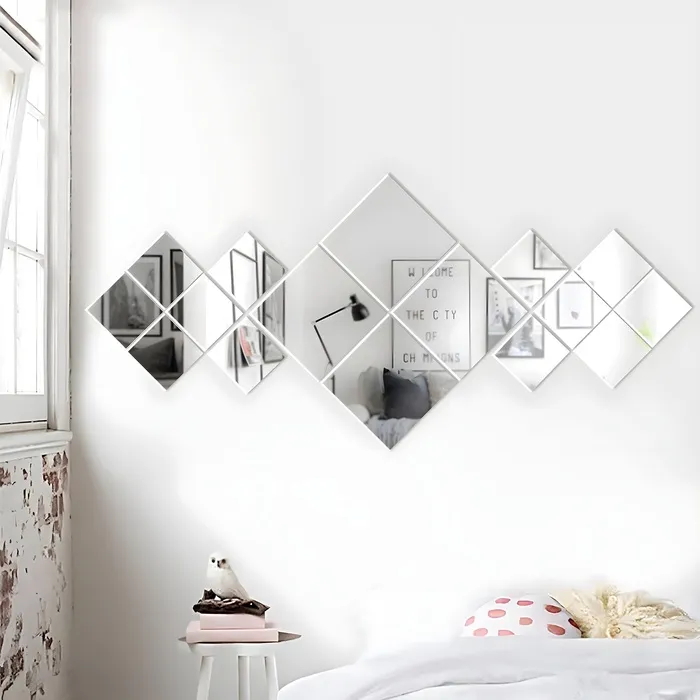 Наклейки изготовлены из высококачественного акрила. Это долговечный, безопасный, влагостойкий и неприхотливый в уходе материал. Наклейки подходят для декора интерьера дома, офиса, магазина. Их используют, чтобы освежить или дополнить интерьер, скрыть дефекты или в качестве безопасной и оригинальной альтернативы зеркалу.