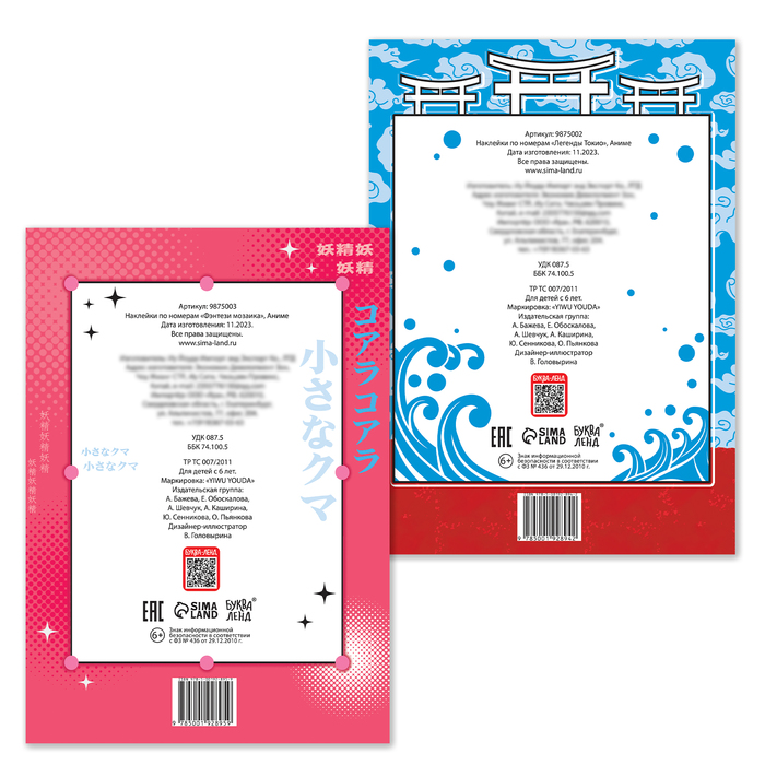 Набор наклеек по номерам, 17 × 24 см, 2 шт., Аниме — Характеристики