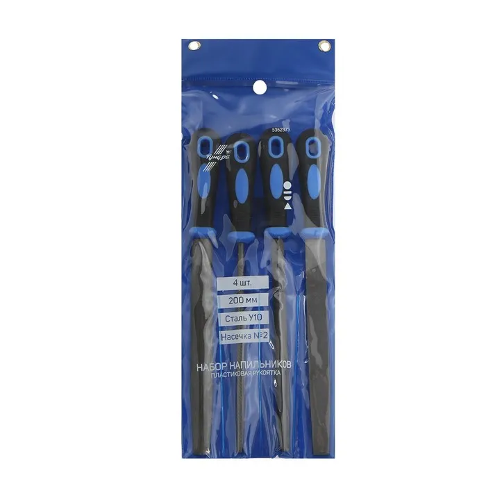 Набор напильников ТУНДРА, сталь У10, насечка №2, пластиковые рукоятки, 200 мм, 4 шт. — Характеристики