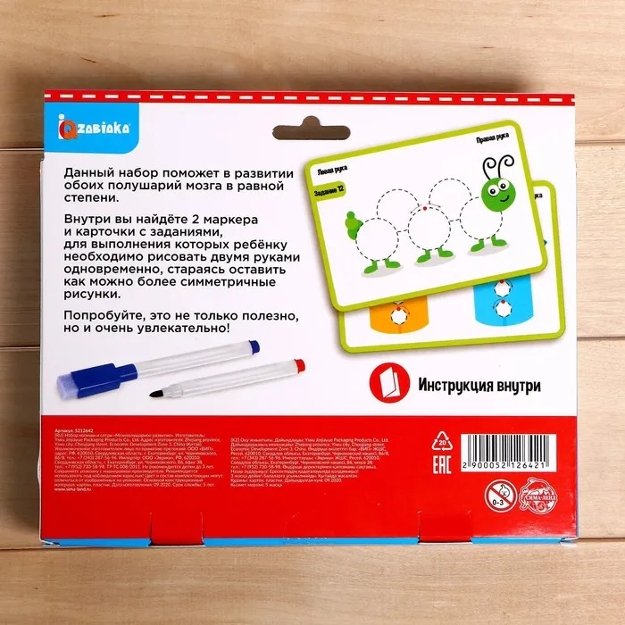 Набор пиши-стирай «Межполушарное развитие» научит ребёнка рисовать двумя руками одновременно. Эта удивительная игра способствует развитию обоих полушарий мозга в равной степени.