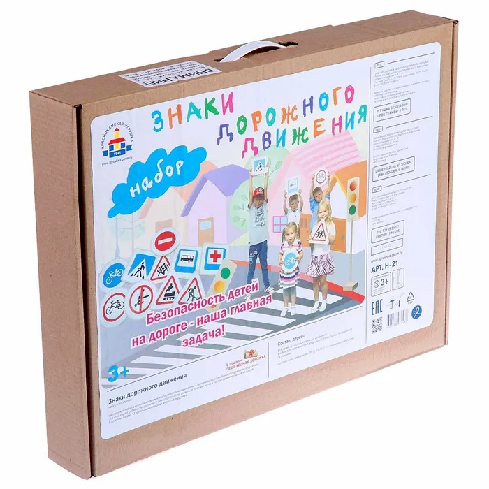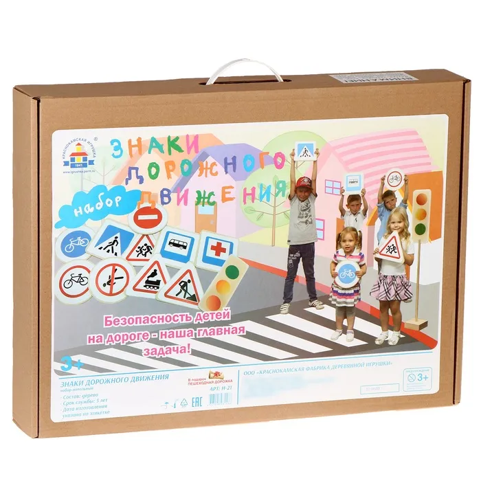Набор «Знаки дорожного движения» — это наглядное учебное пособие с крупными и яркими рисунками. Комплект познакомит с ситуациями на проезжей части, которые чаще всего случаются с малышами. Например, как перейти на другую сторону улицы, если не работает светофор? Ответ очень прост — по пешеходному переходу. Занимайтесь вместе с ребятами и разыгрывайте сюжеты: так дети легче запомнят правила поведения на дороге.