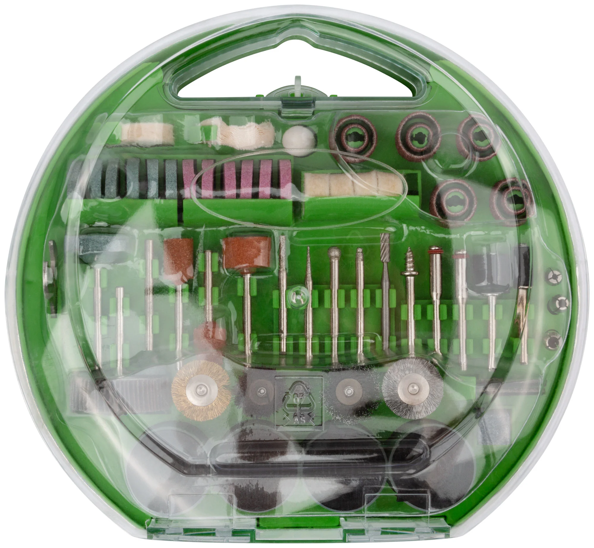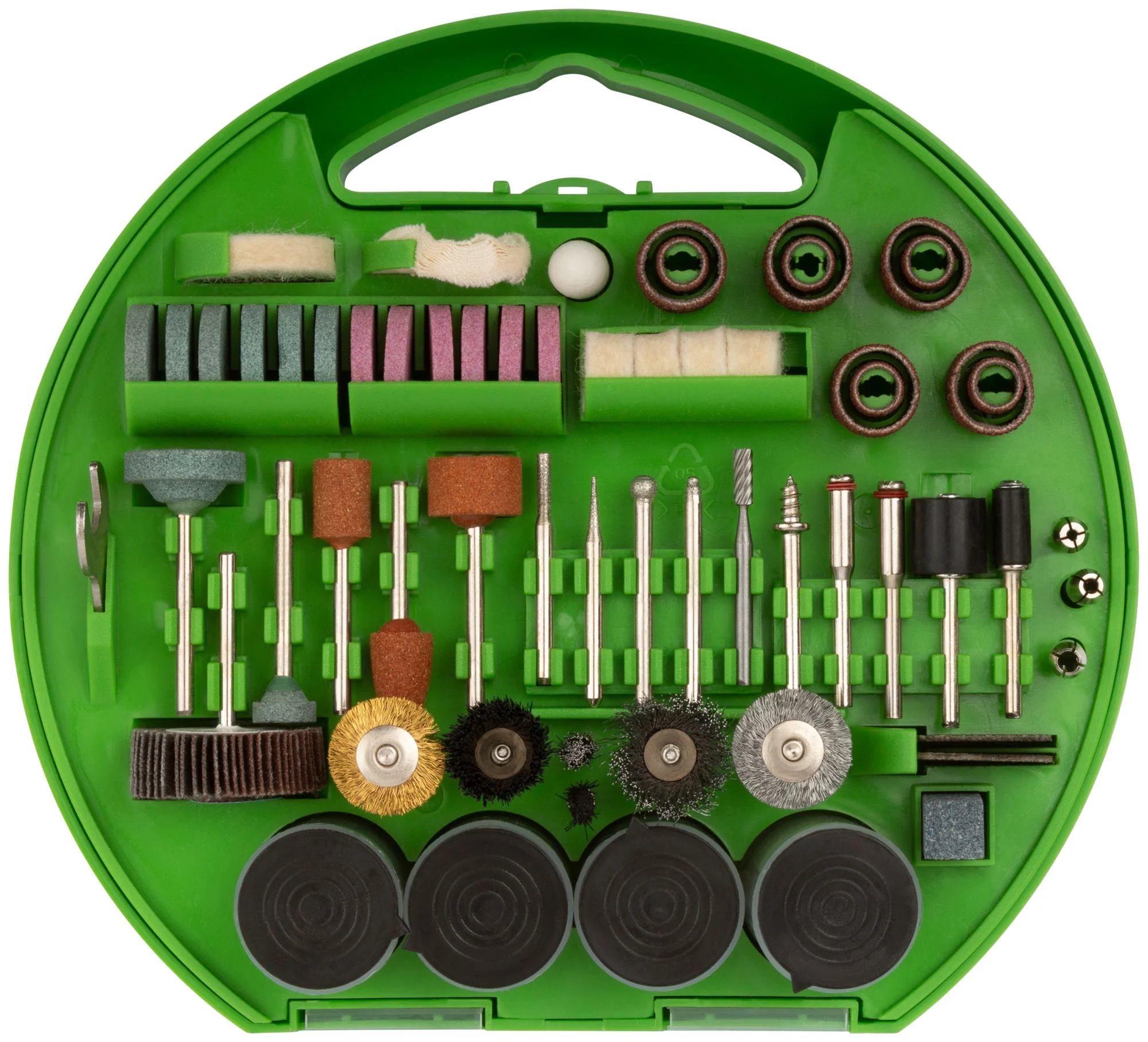 Каждая насадка хранится в удобном пластиковом чемоданчике, который обеспечивает легкий доступ к инструментам и их сохранность. Компактные размеры чемоданчика (185x170x55 мм) позволяют легко транспортировать его к месту работы и не занимают много места в мастерской.