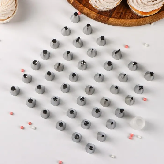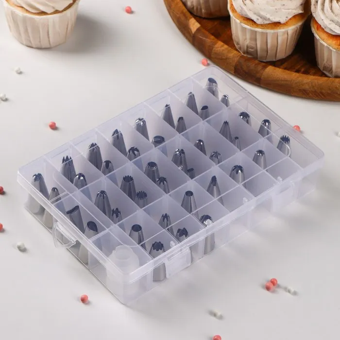Ищете идеальный набор для создания шедевров в кондитерском деле? Встречайте комплект из 42 кондитерских насадок с адаптером и удобным кейсом! Этот набор — это не просто инструмент, а настоящая находка для всех, кто ценит креативность на кухне. Благодаря разнообразию форм и размеров насадок вы сможете воплощать самые смелые идеи, создавая эффектные узоры, цветы и рюши из крема на тортах, капкейках и других десертах.