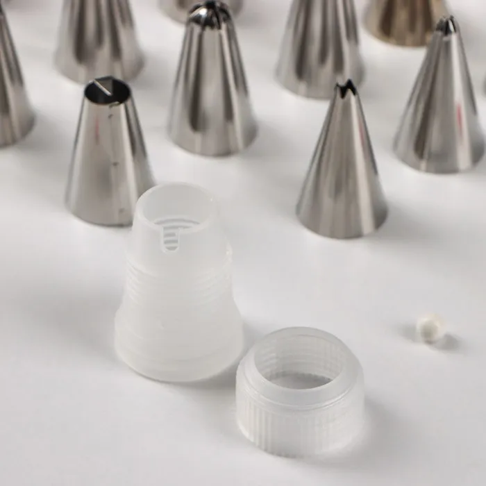 - Готовность к экспериментам: адаптер позволяет легко менять насадки без необходимости перекладывать крем, что экономит время и делает процесс более комфортным.